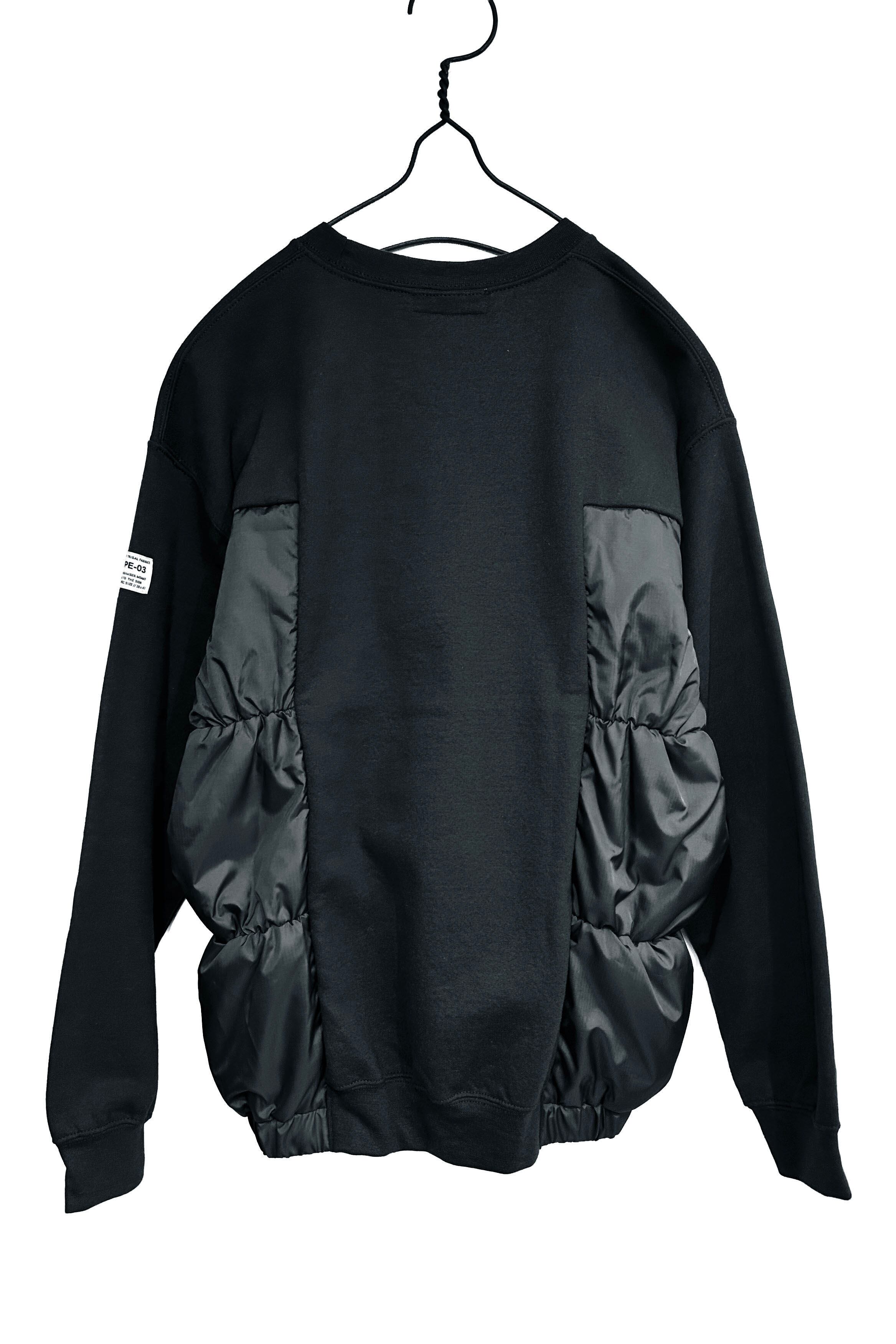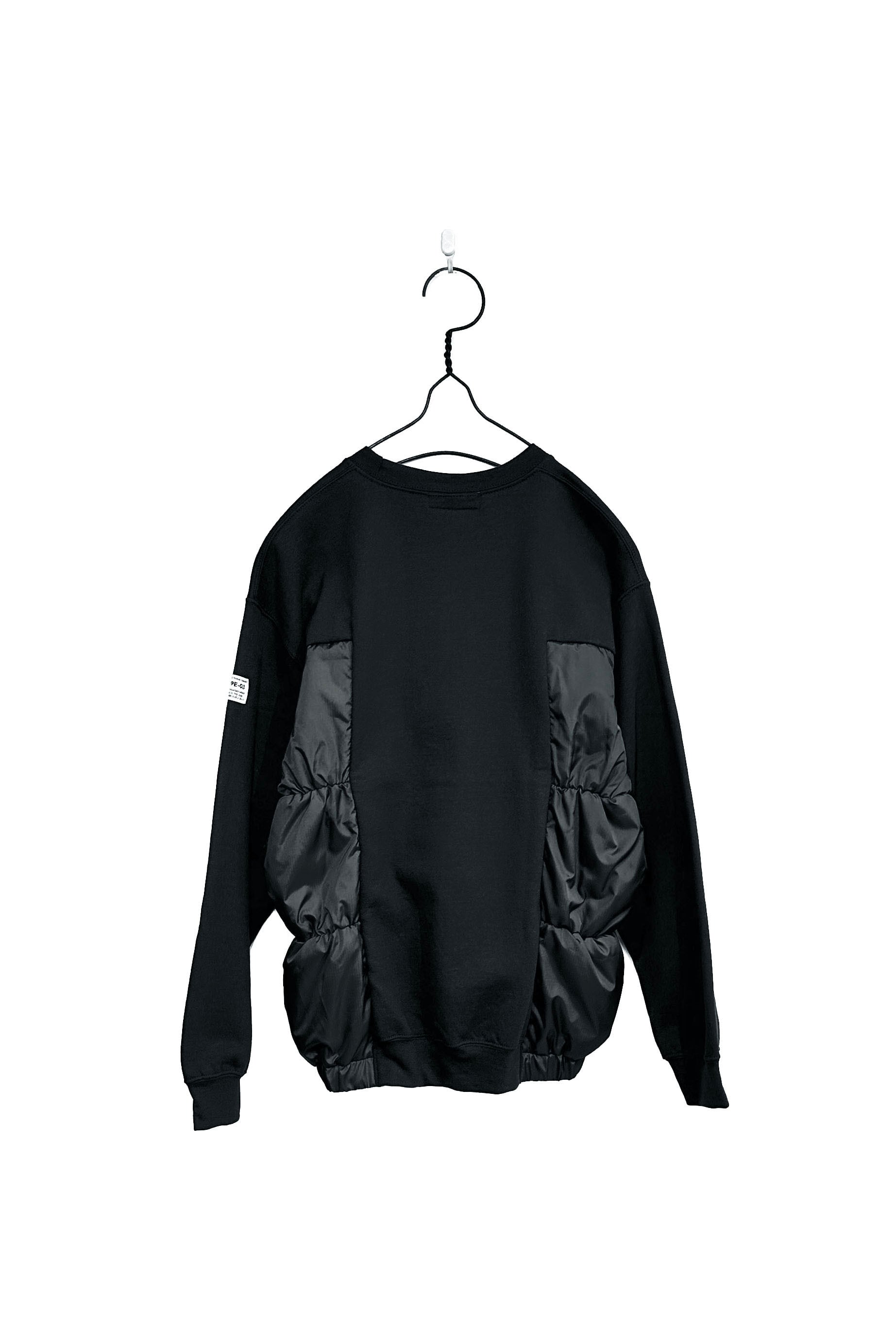 パファージャケットと裏起毛クルーネックスウェットをドッキングしたアイテム。