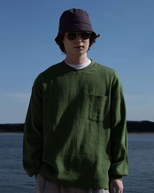 高密度に打ち込んだウェザーに近江晒と呼ばれる丁寧にもみほぐす特別な晒しを施し、ヴィンテージ調のしわ感と膨らみを表現した素材。
