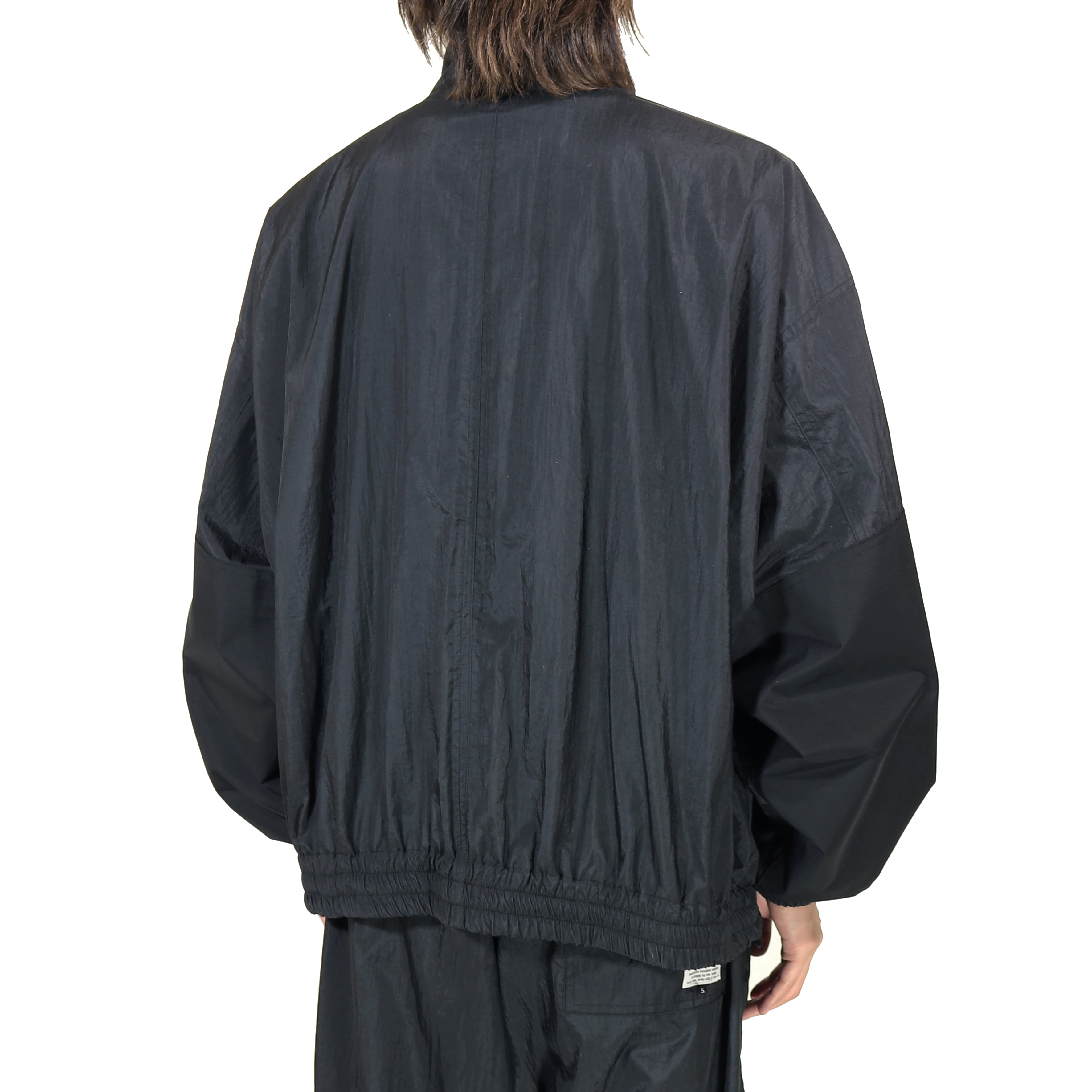 シルエットは非常に大きく取った身幅、肩幅、アームホールに対しショート丈に設定したボックスシルエット。