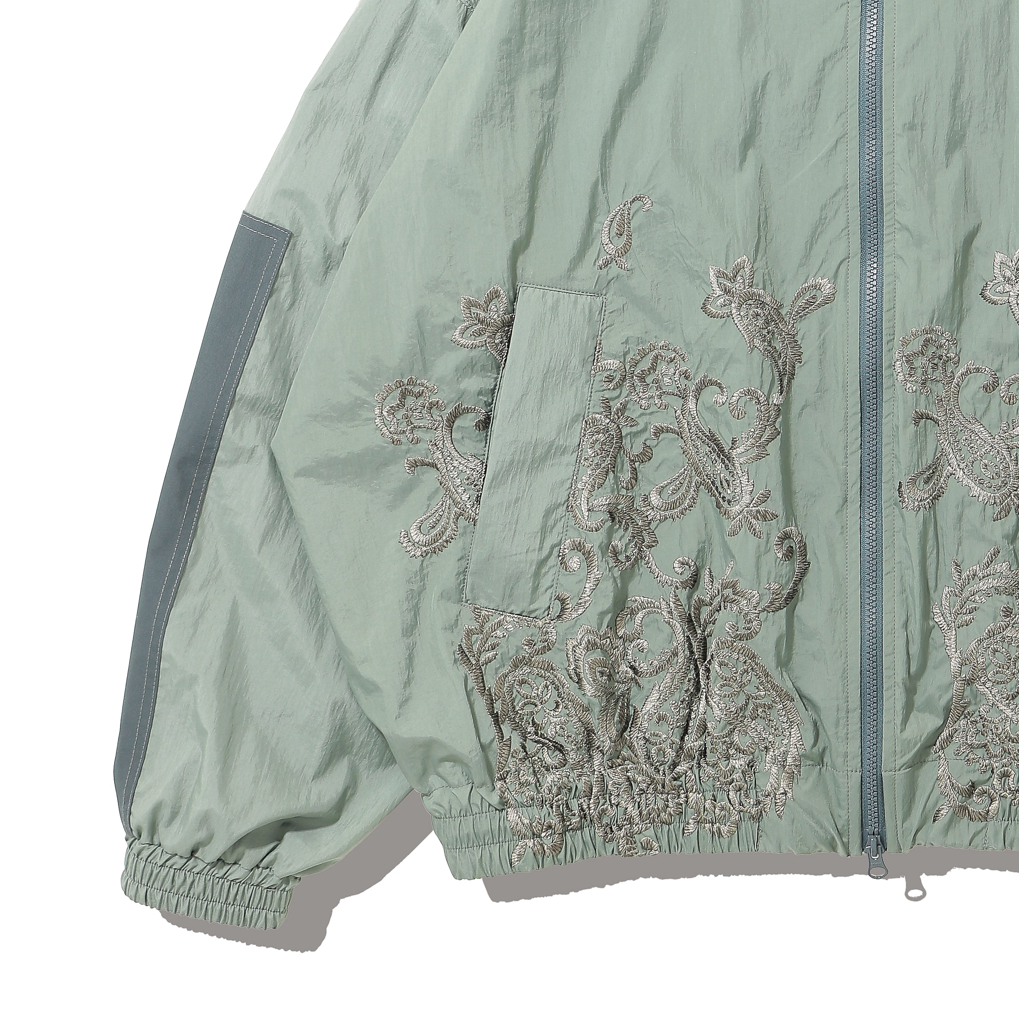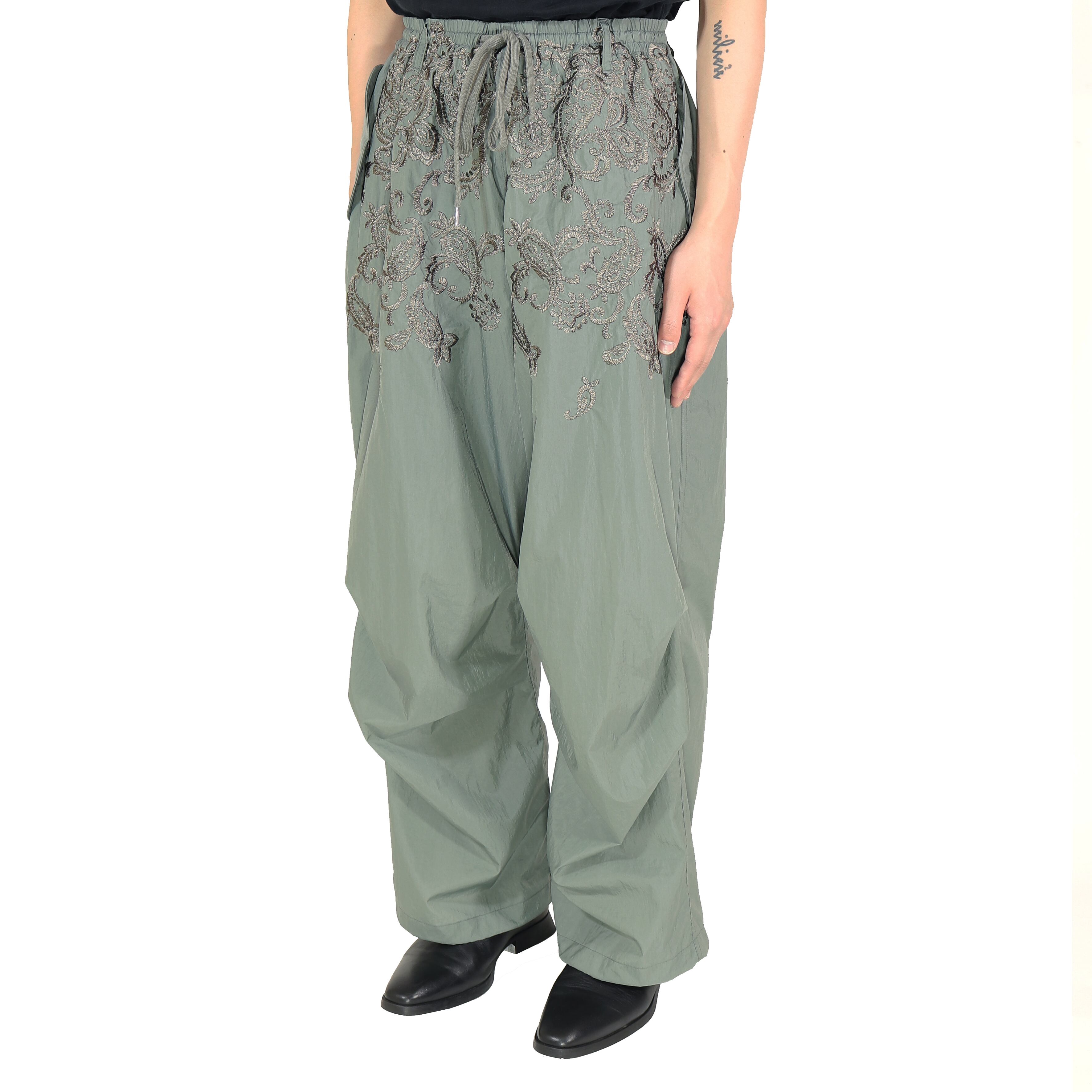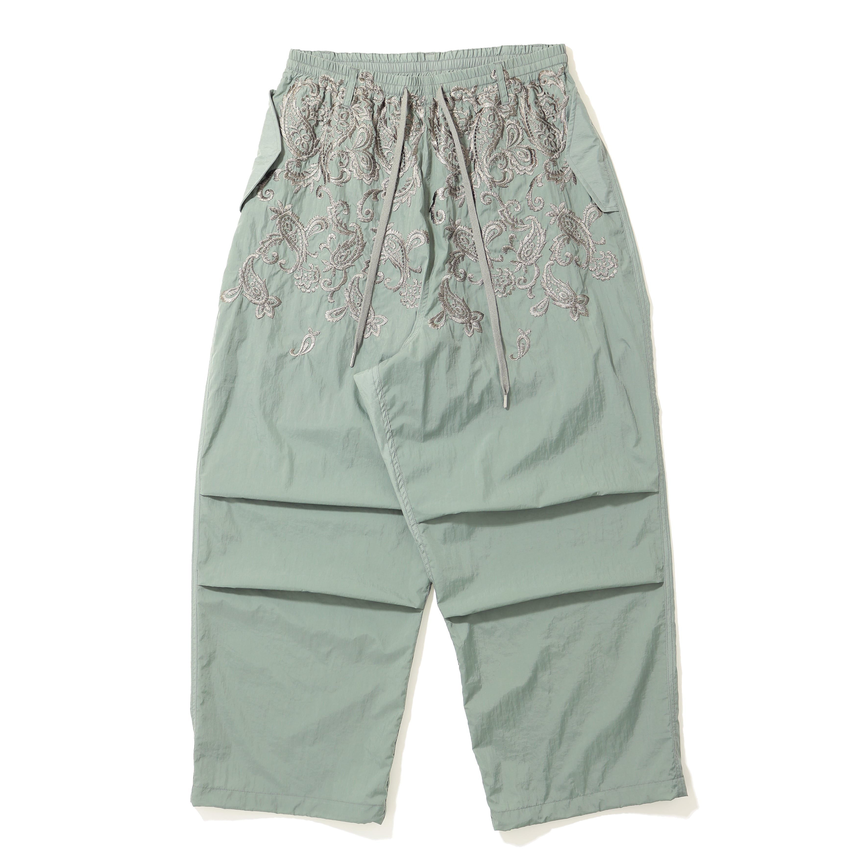 ウエスト上部から下部にかけてペイズリー刺繍を配置。